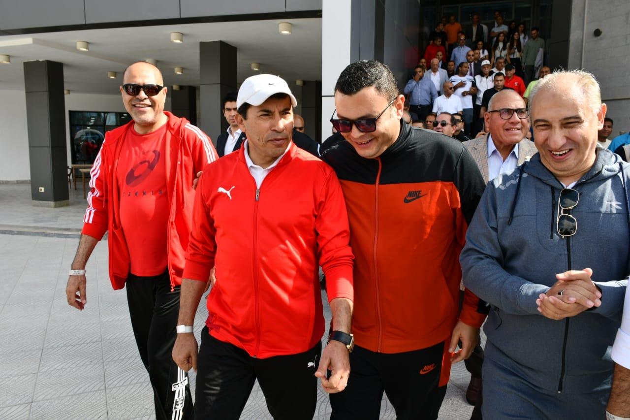 وقام الوزراء بجولة داخل أرجاء النادي بالدراجات، الذي أقيم على أحدث الطرز الإنشائية ويضم مجموعة متكاملة من المنشآت الرياضية والخدمية والاجتماعية، منها ملاعب كرة القدم الخماسية والتنس والإسكواش، ومجمع حمامات السباحة، وصالة الجيمانيزيوم، والمبنى الاجتماعي، والمطاعم والكافيتريات، بما يجعله نموذجا متكاملا للأندية الحديثة التي توفر خدمات متكاملة للأعضاء وروادها من مختلف الفئات العمرية، اعقبها مباراة كرة قدم بين السادة الوزراء.