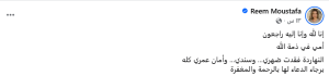 “إنا لله وإنا إليه راجعون، أمي في ذمة الله، النهاردة فقدت ضهري، وسندي، وأمان عمري كله، برجاء الدعاء لها بالرحمة والمغفرة.”