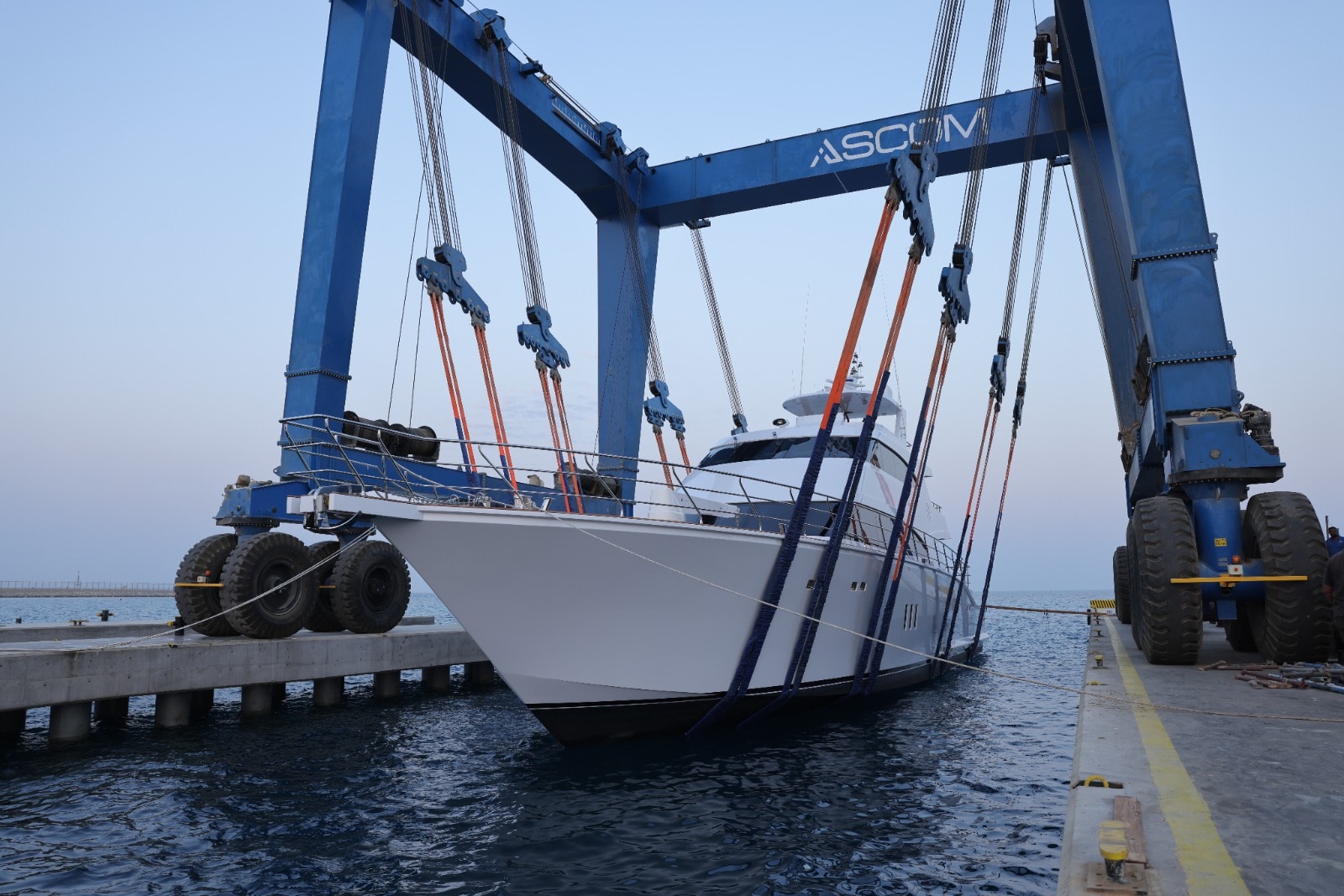 واليخت مزود بوحدتين هيدروليك أماميتين لتحريك ونش أمامي متعدد الاستخدامات، بالإضافة إلى وحدة هيدروليك خلفية لتحريك منصة خاصة للسباحة.
