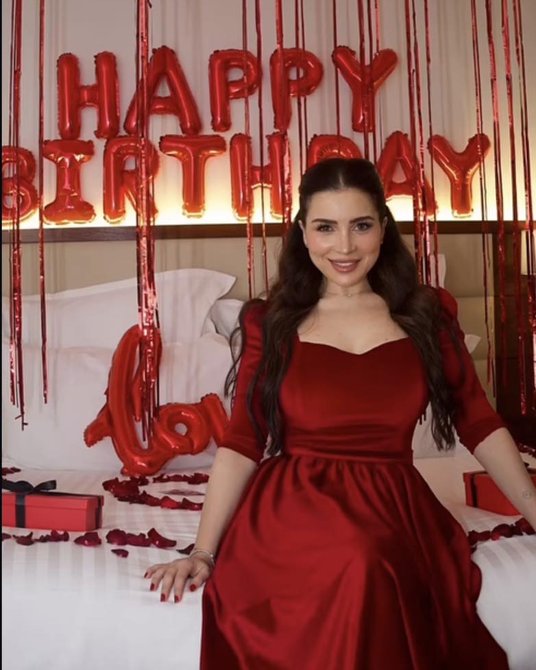 “كل سنة وأنتِ ست البنات، كل سنة وأنتِ نجمة النجوم، كل سنة وأنتِ حبيبتي ومراتي وبنتي، كل سنة وأنتِ أغلى مخلوق على قلبي، كل سنة وأنتِ الحياة وما فيها، كل سنة وأنتِ ضحكتك بتحلى الدنيا كلها”.