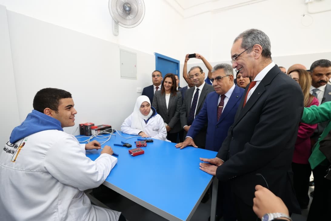 كذلك تفقد الدكتور عمرو طلعت واللواء طارق مرزوق رافقهما المهندس تامر المهدى مدرسة WE للتكنولوجيا التطبيقية بالمنصورة، والتى تضم فى مراحلها المختلفة نحو 364 طالب وطالبة، ويعمل بها 44 معلم وإدارى، حيث تابع سير العملية التعليمية داخل المدرسة والتى تم تزويدها ببنية تحتية متكاملة للاتصالات مما يجعلها مدرسة ذكية متخصصة فى مجال الاتصالات وتكنولوجيا المعلومات على النحو الذى يحقق رؤية الوزارة فى اعدد جيل جديد من العمالة الفنية المؤهلة والقادرة على المنافسة فى أسواق الاتصالات المحلية والإقليمية والدولية وتنمية مهاراتهم وإكسابهم الخبرة العملية اللازمة.