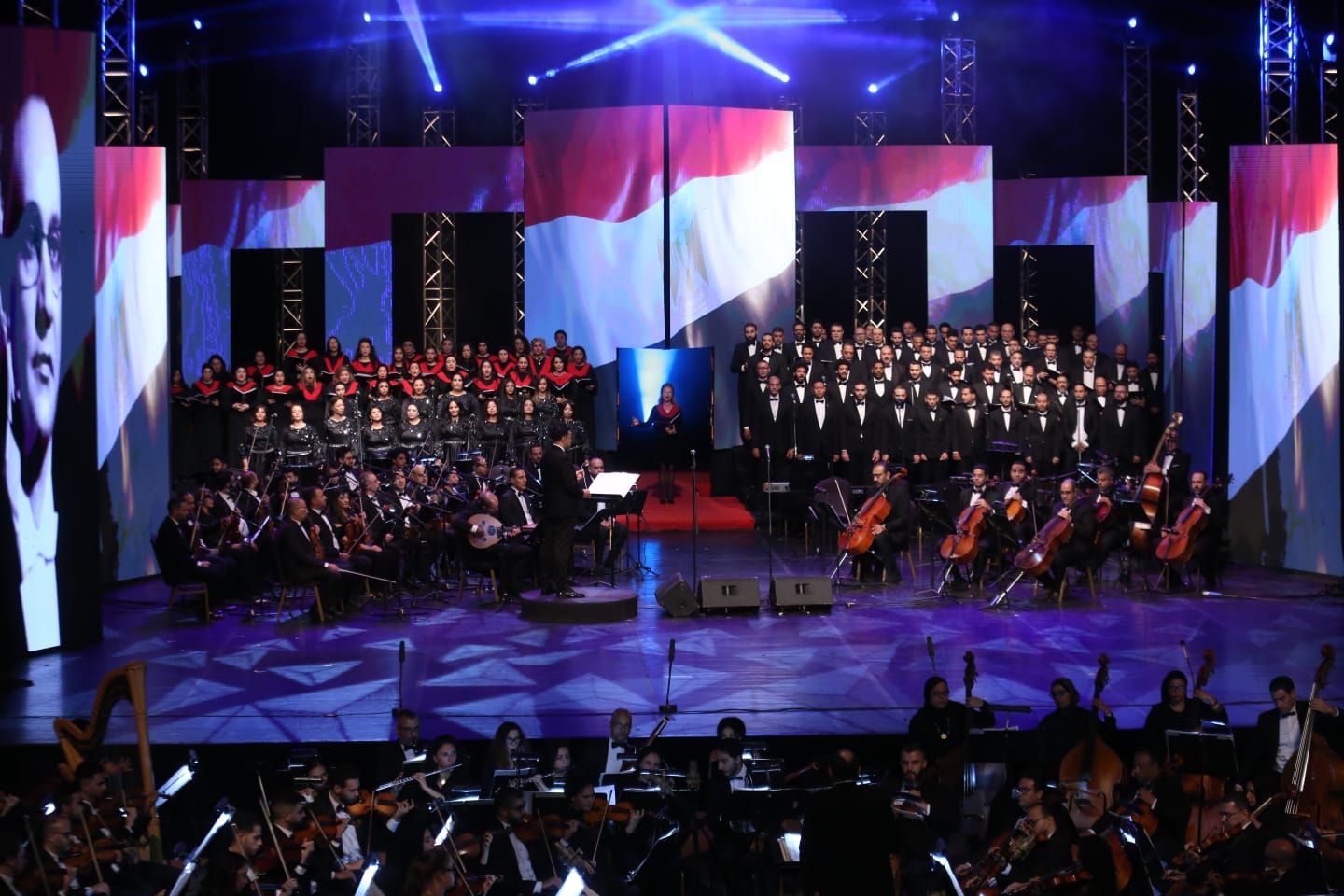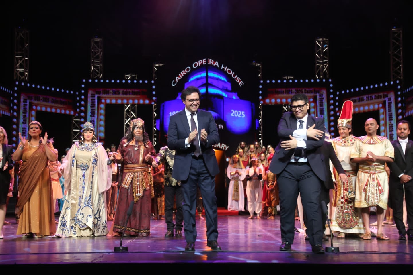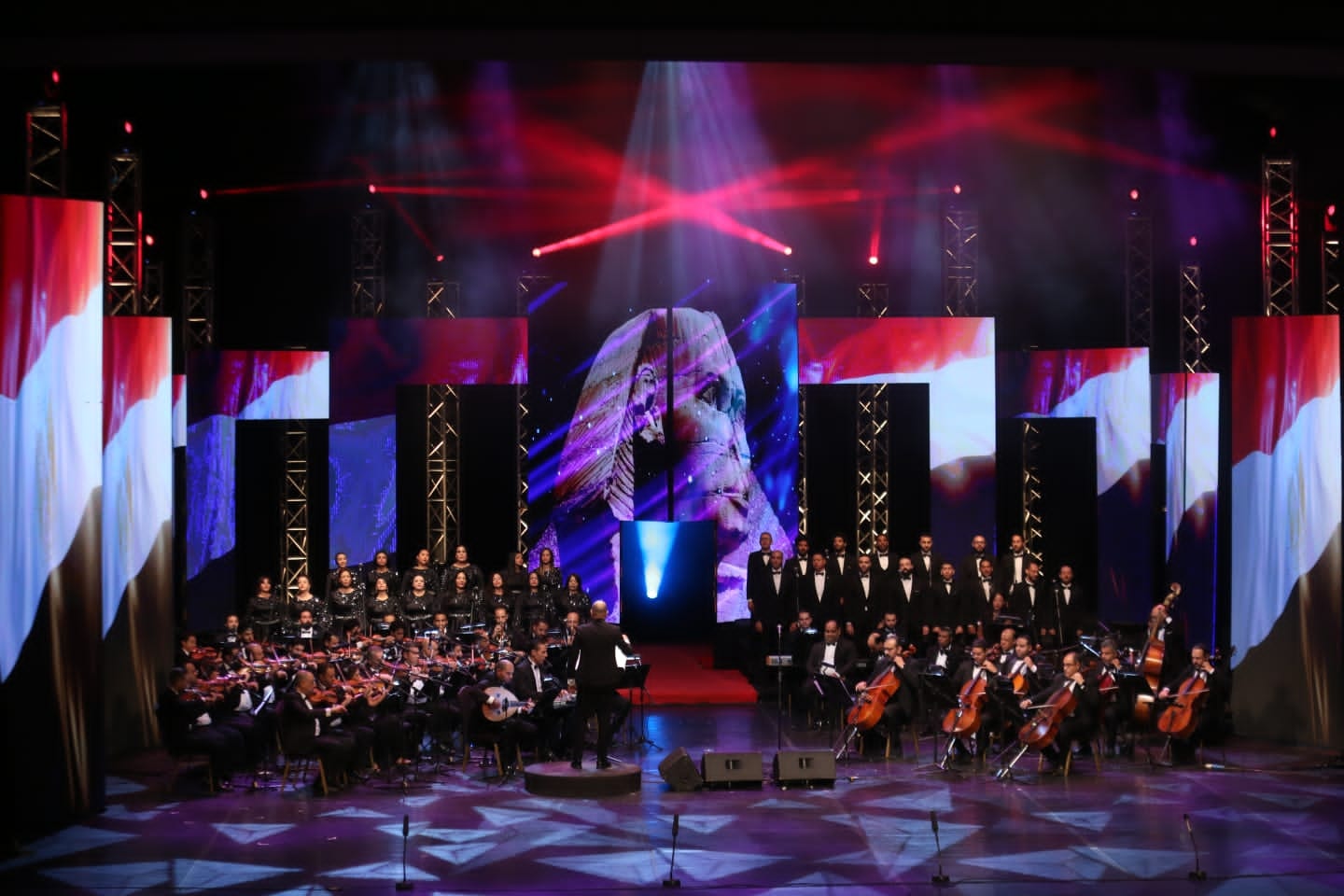 وقدّم أوركسترا أوبرا القاهرة بقيادة المايسترو أحمد فرج معزوفات من التراث الموسيقي العالمي والمصري، كما شاركت فرقة الرقص المسرحي الحديث في عرض مقتطفات من باليه “شهرزاد” بتصميم وليد عوني، واختُتم الحفل بمشهد النصر من أوبرا “عايدة” للموسيقار الإيطالي فيردي، بمشاركة فرقة أوبرا القاهرة، وفرقة باليه الأوبرا، ونخبة من نجوم الغناء الأوبرالي.